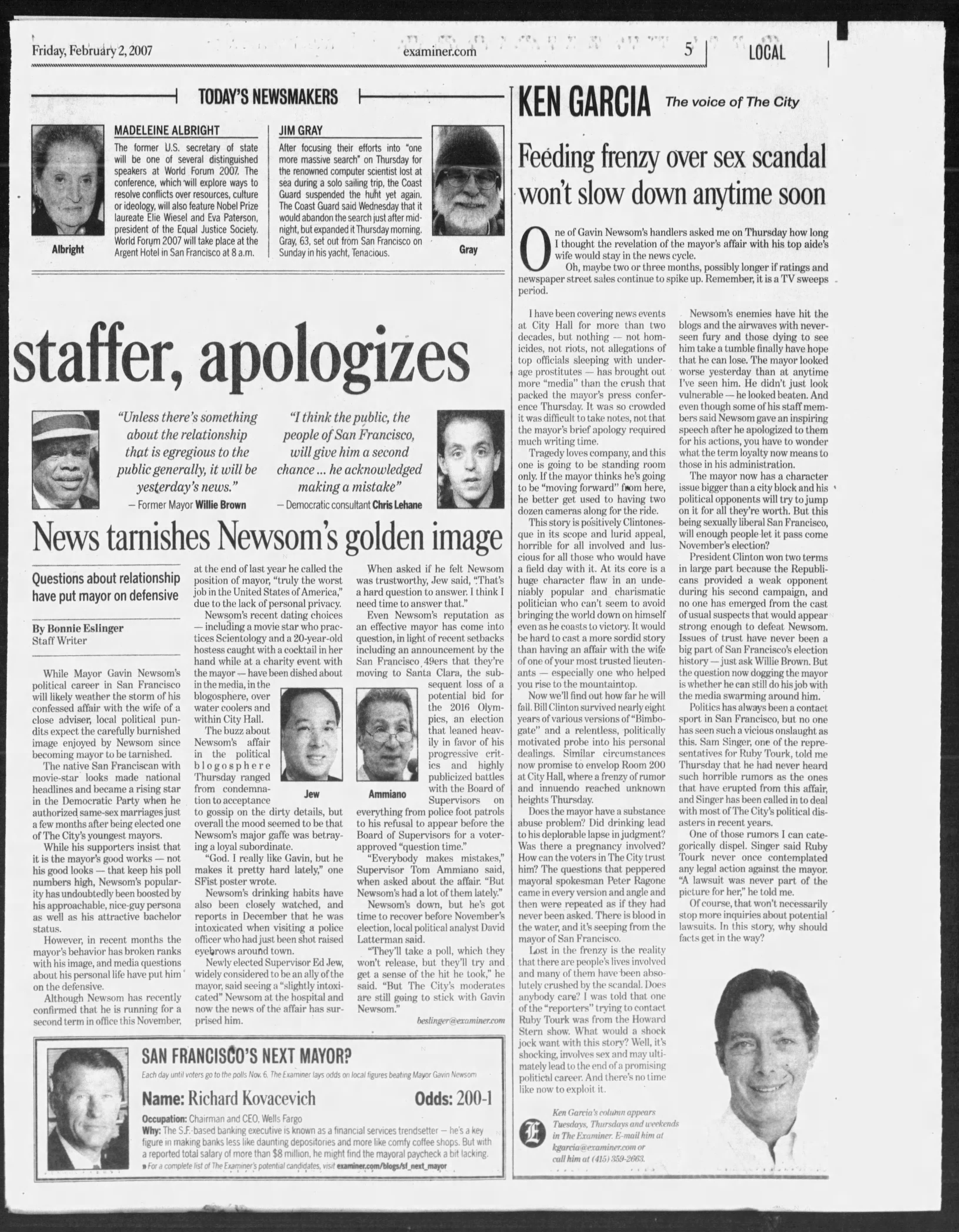Newsom acknowledges affair with staff, apologizes (page 2)