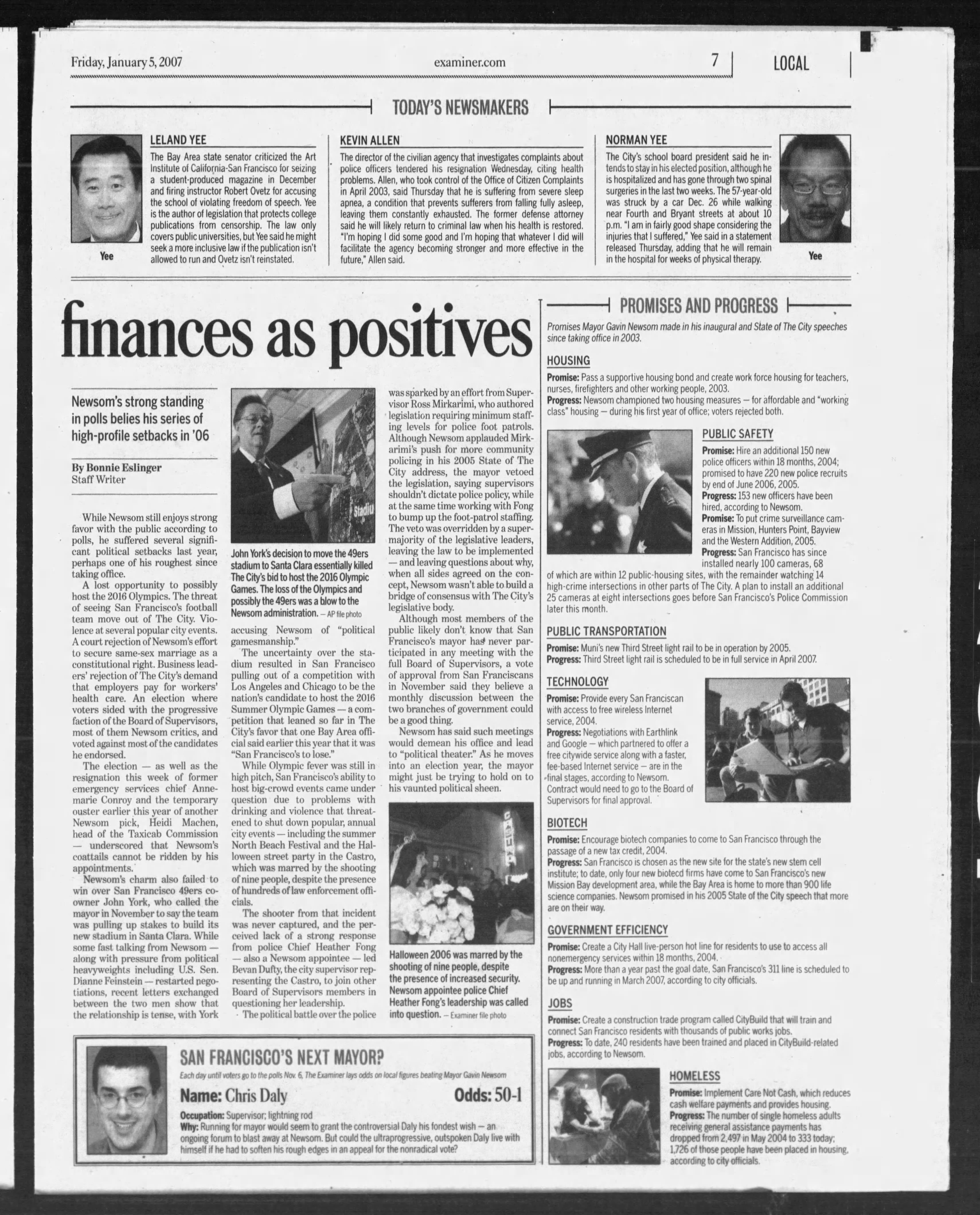 Newsom’s strong standing in polls belies his series of high-profile setbacks in ’06