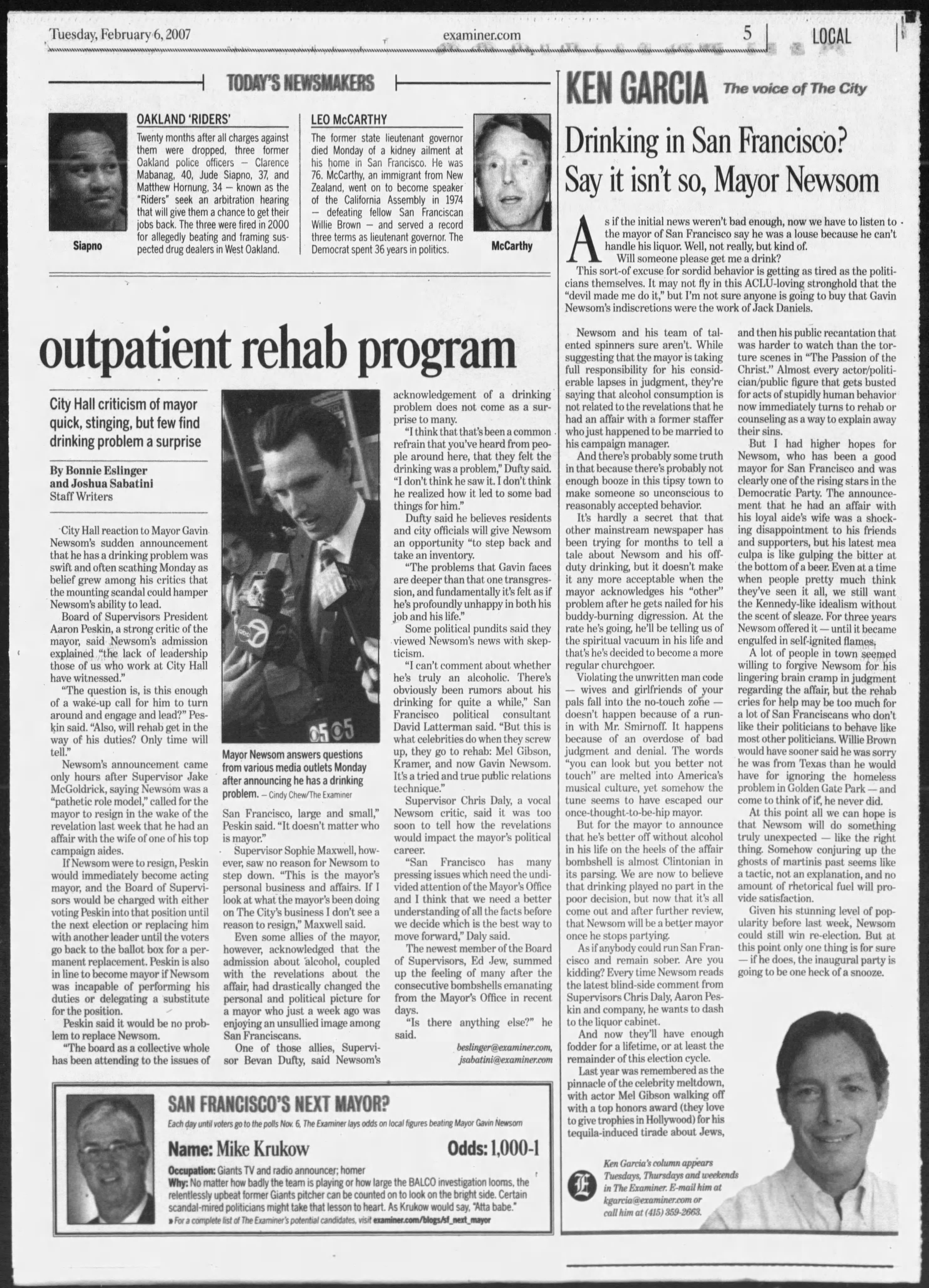 Newsom admits alcohol problem, says he's in outpatient rehab program (page 2)